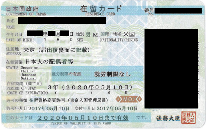 このようなケースで取得できるビザが「日本人の配偶者等」というわけです。